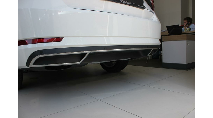 rozsdamentes acél - króm hátsó lökhárító keretek - hamis kipufogócső a Skoda Superb / Superb kombi III -hoz, 2015 -től
