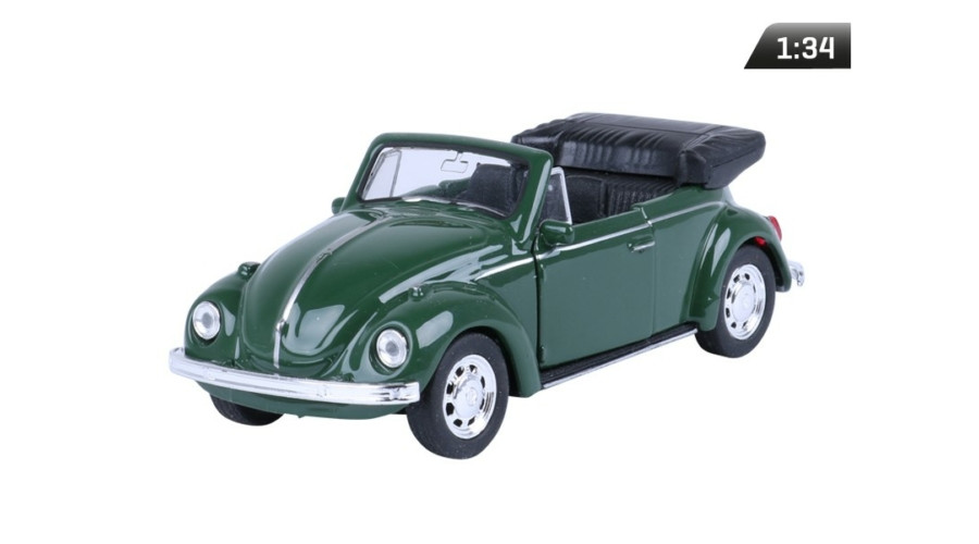 Makett autó, 01:34, VW Beetle kabrió, zöld.