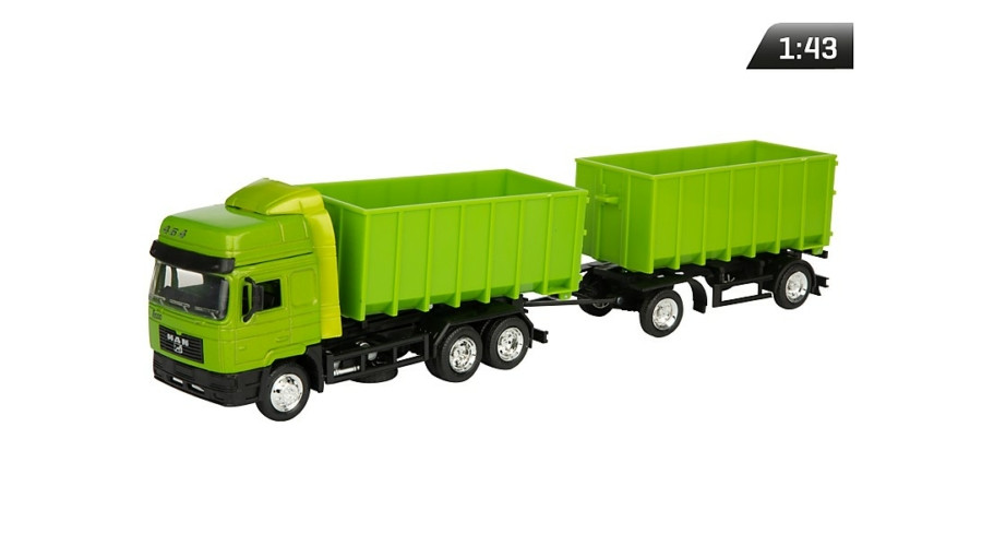 Makett autó, 01:43 MAN Truck, konténer, zöld.