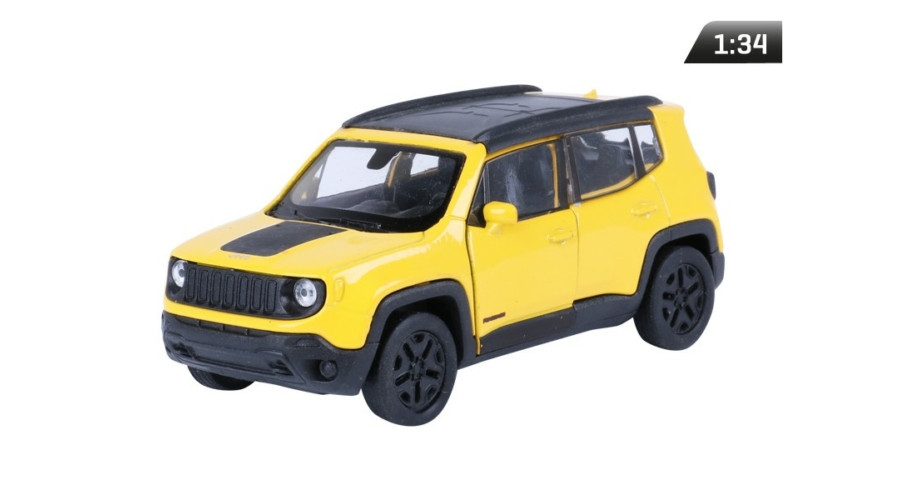 Makett autó, 1:34 Jeep Renegade Trailhawk, sárga.