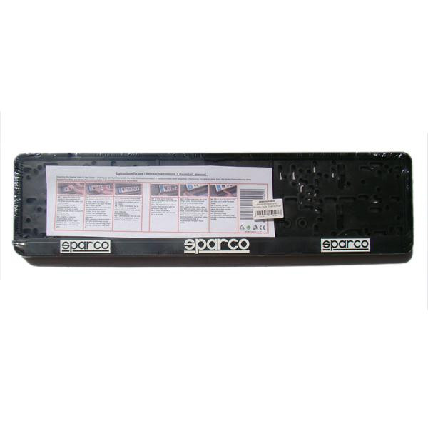 Fehér Sparco feliratos, kiváló minőségű műanyagból készült, fekete rendszámtáblatartó.