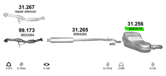K31.256 Volvo S60 2.4 D kipufogó hátsódob