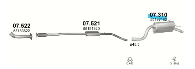 Marix 07-310 kipufogó - Fiat Idea 1.4i 16V 10/03- (REF 16.081 12.7138 12.7051 148-359 148-049 03.104.83 02.003.86 25.84.07 25.82.07 FT805D 231019 01.97620 FA25716 21298) (OE 55 191 319 55 194 858)