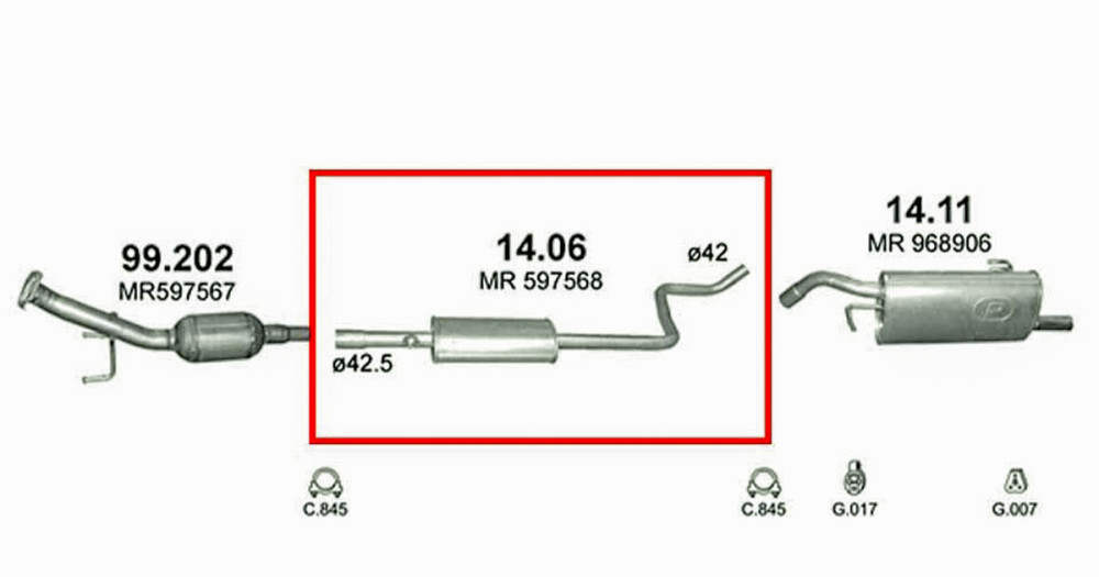 Marix 14-06 kipufogó - Mitsubishi Colt 1.1i/1.3i 16V 01/04- (REF 30.6017 281-283 690003 P3818 CL297W 260999 01.50518 23663) (OE MR 597568)