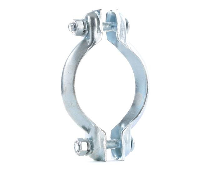 Francia C Bilincs, egy csavaros, Átmérő Ø 80 mm, kipufogó rendszer építéshez, javításhoz, felújításhoz. C-alakú bilincsnek két része van. Az egyik része a kipufogódobhoz van rögzítve, a másik része pedig az autó karosszériájához.